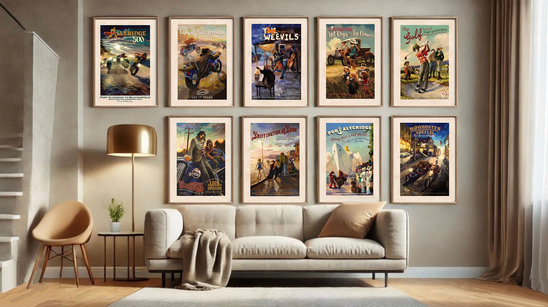 These aren't just posters—they're timeless, character-filled companions ready to transport you to a different place and bring a touch of Alveridge whimsy to any space.