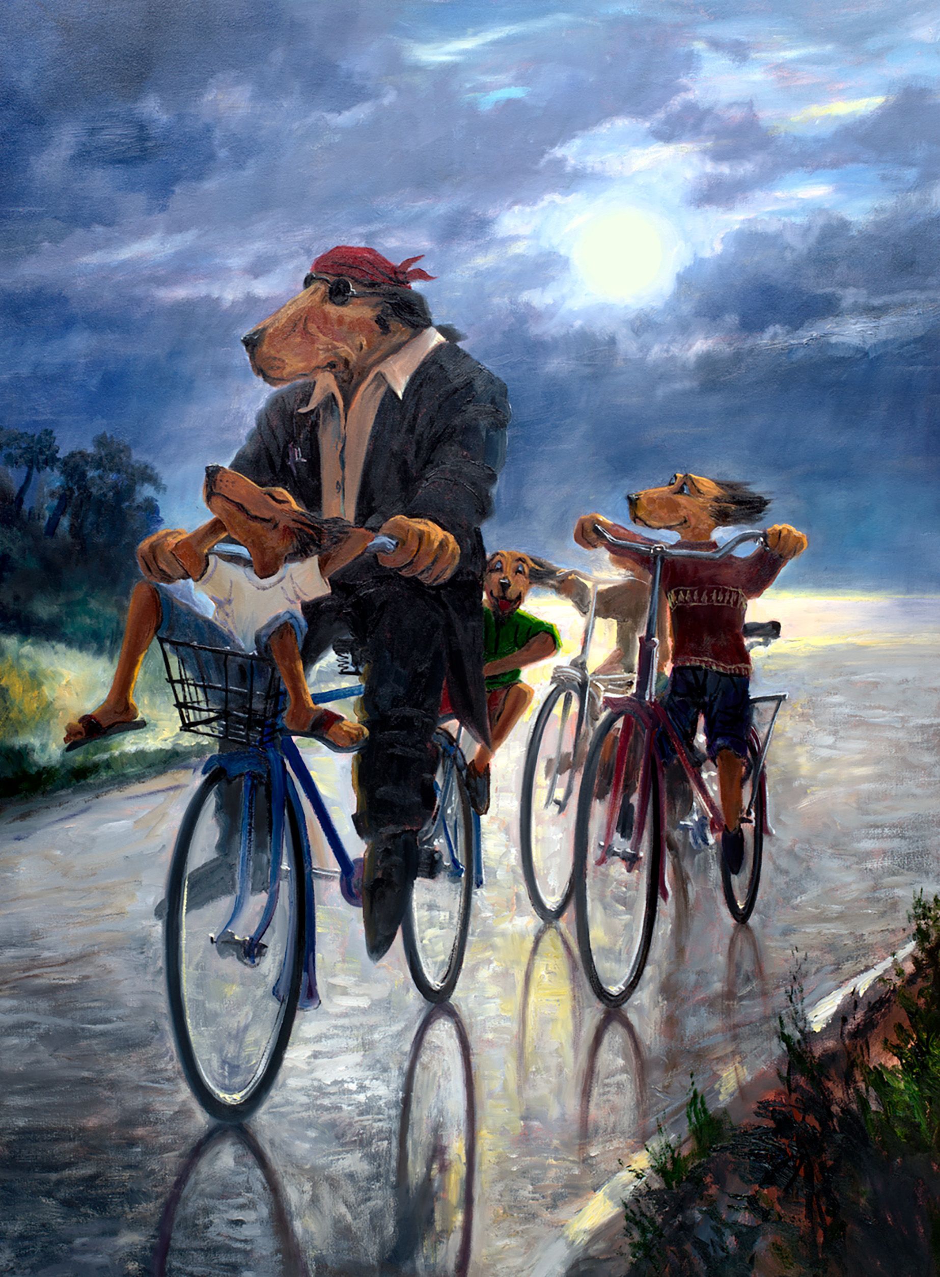 Check out the sheer delight of the basket houndling! And all bets are off on how long the wee fellow with the too big bike will last, but, for now, he is a fully fledged hero