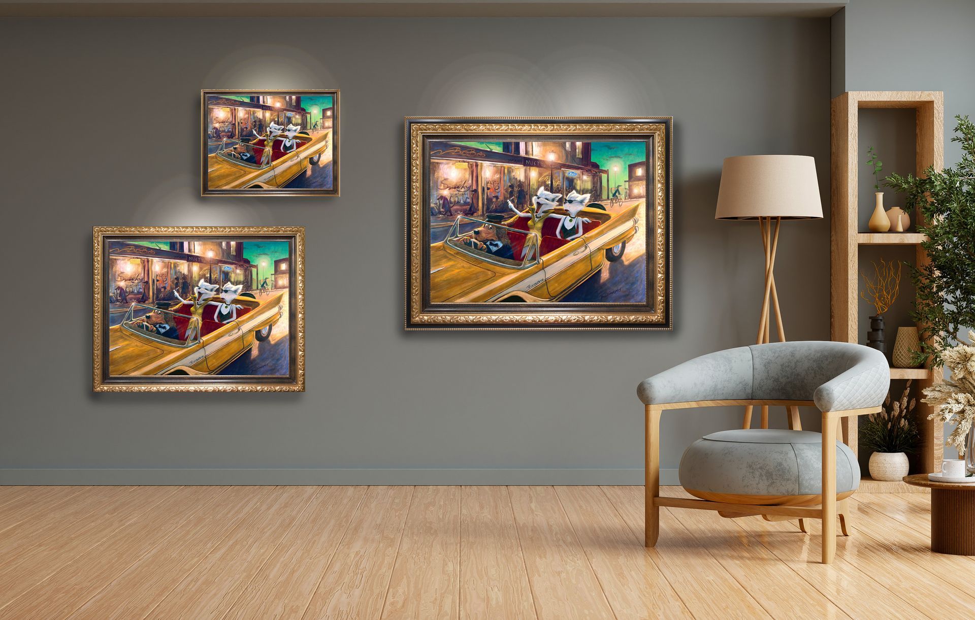Cat artwork: “Of course sweety daaarling!” Full of their own importance in their own eyes and the manifest inadequacies of others, a cruise through town at full critique is just the thing! Who would want to be a hound chauffeur?